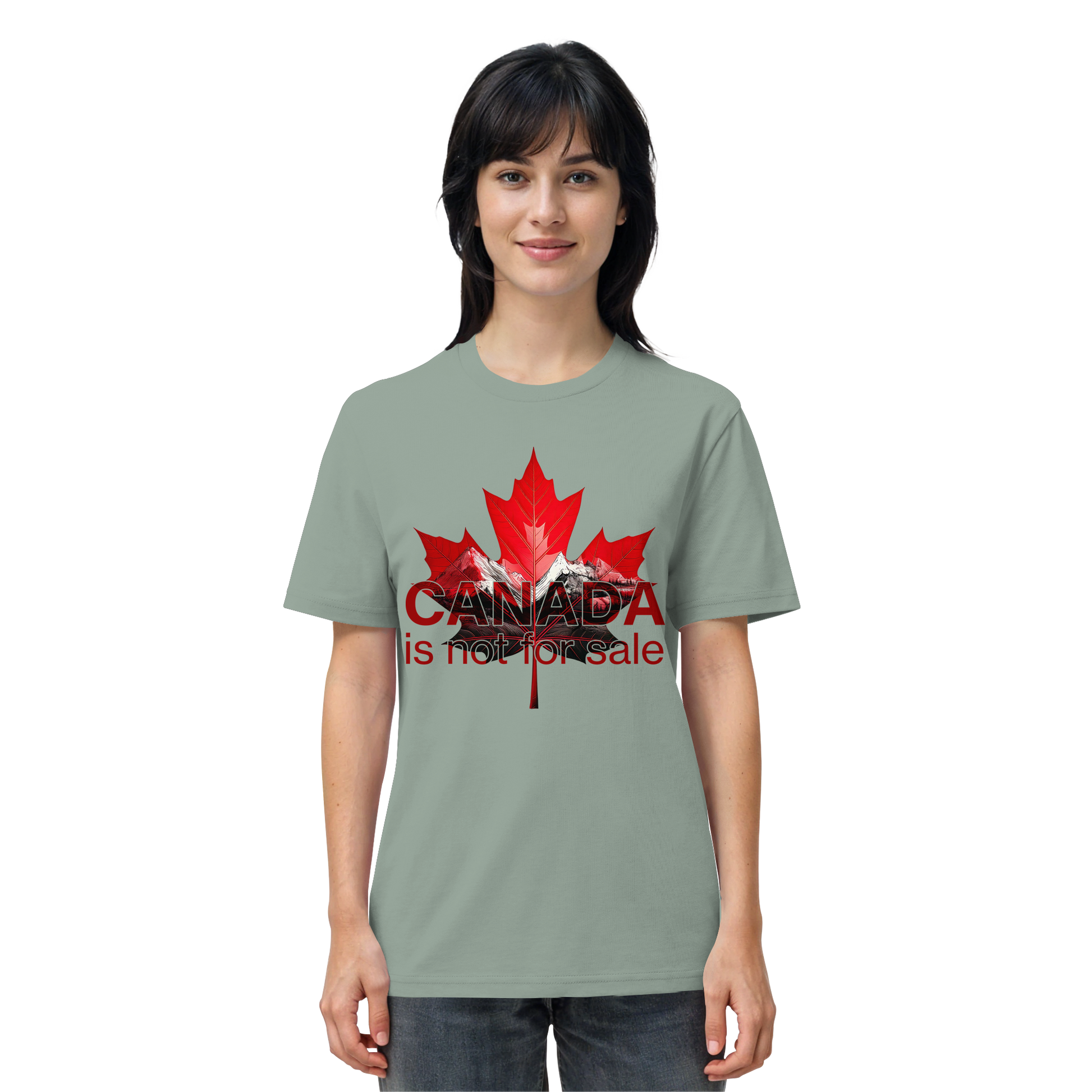 “Canada is not for Sale” Unisex Short Sleeve Tee – Red Maple Leaf and Mountains, Stylish Canada Shirt