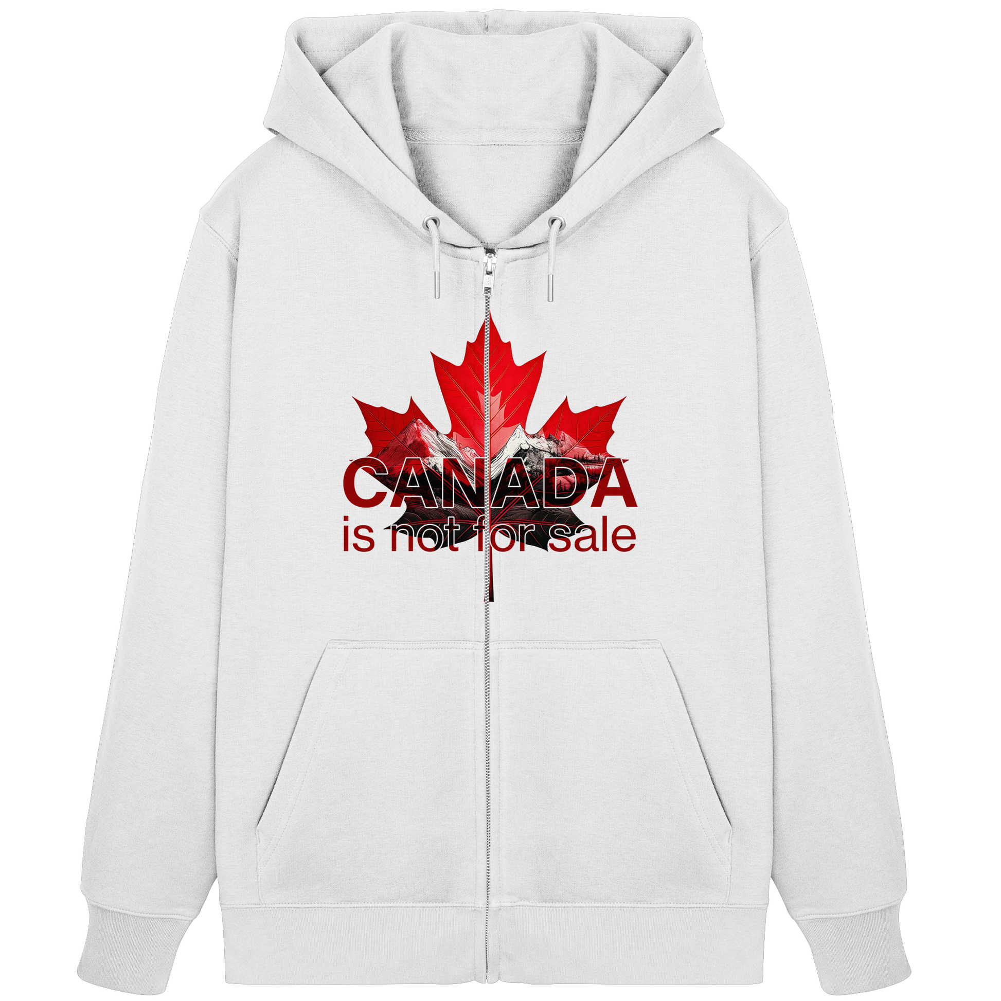 Zip Hoodie “Canada is Not for Sale” – Red Maple Leaf and Mountains, Cozy and Stylish Sweatshirt for Proud Canadians