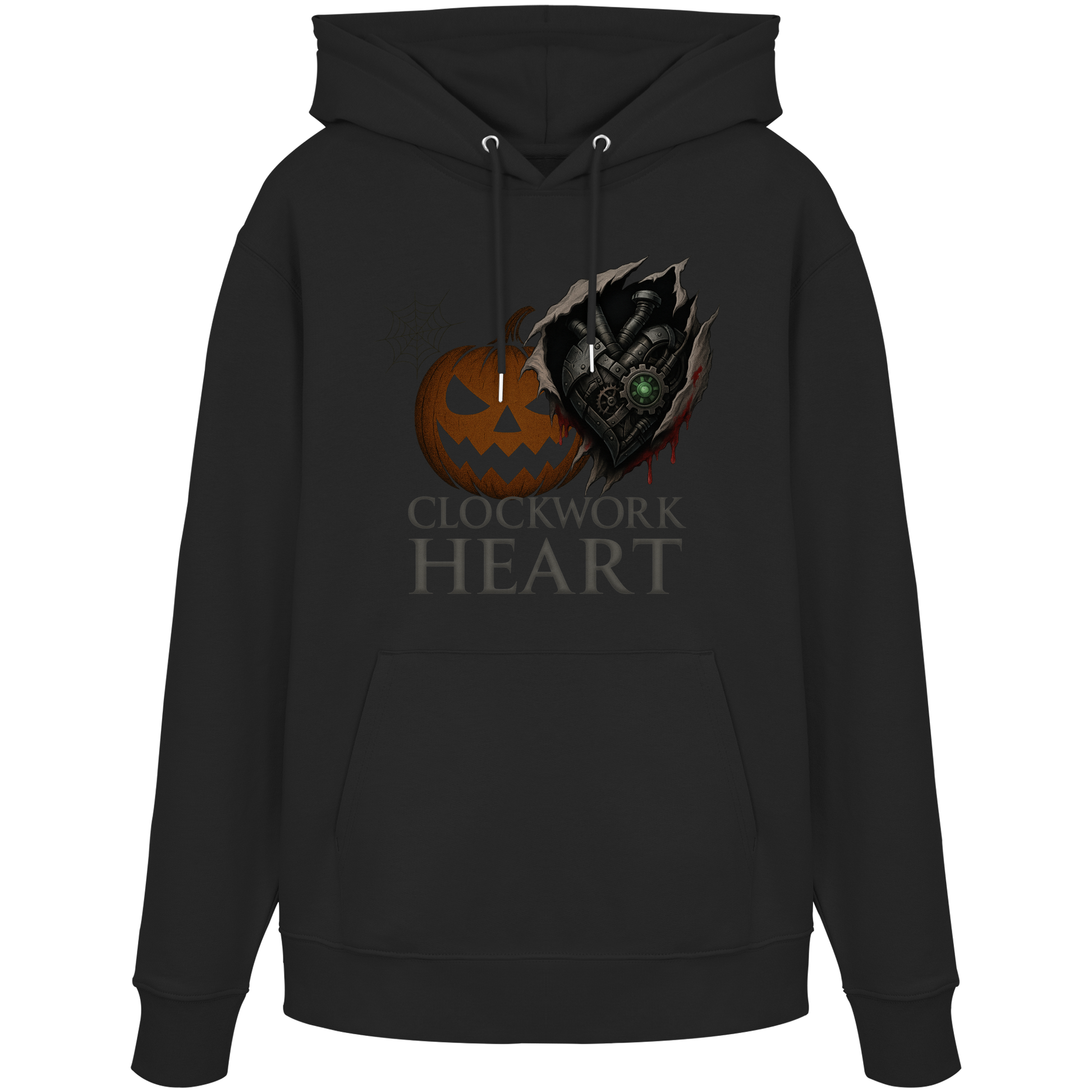 Clockwork Heart is a design for those whose emotions tick like gears and whose pulse runs on shadow. A biomechanical heart – bolted and bound – rips through fabric like a machine forced into human form. Behind it, a carved jack-o'-lantern looms like a silent spectator, reminding us of Halloween’s macabre rhythm.