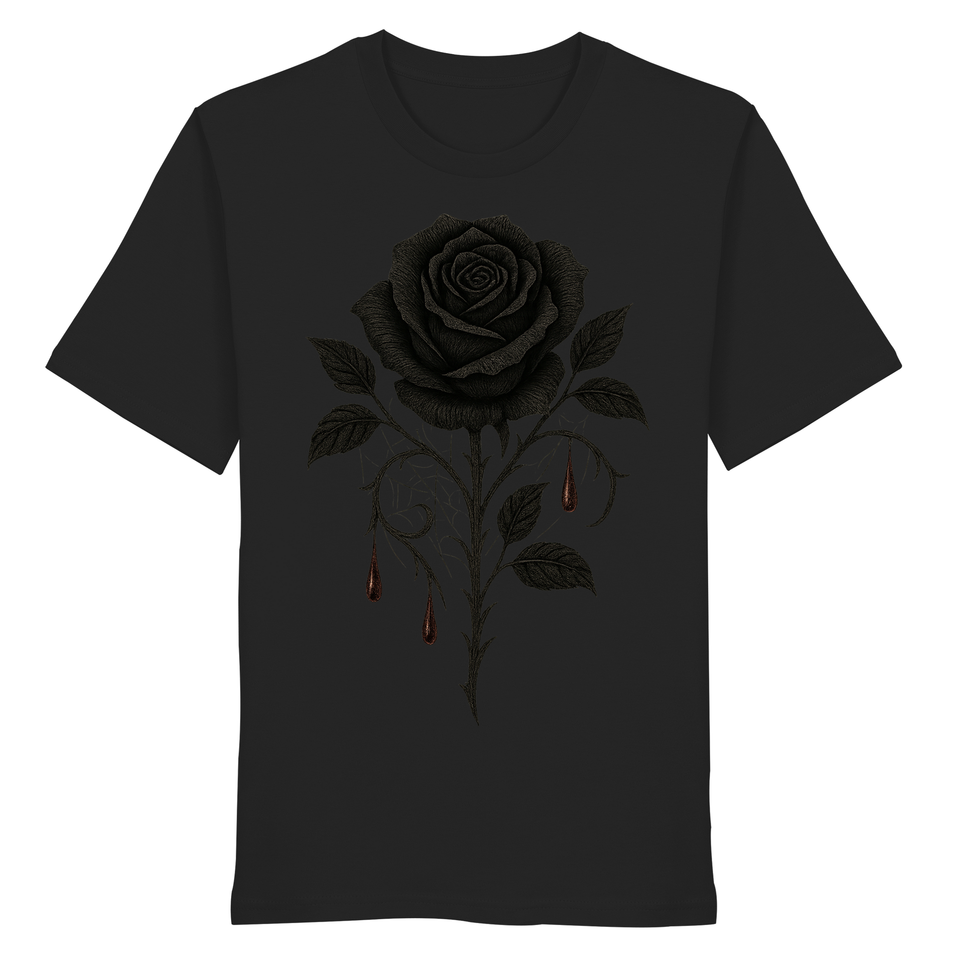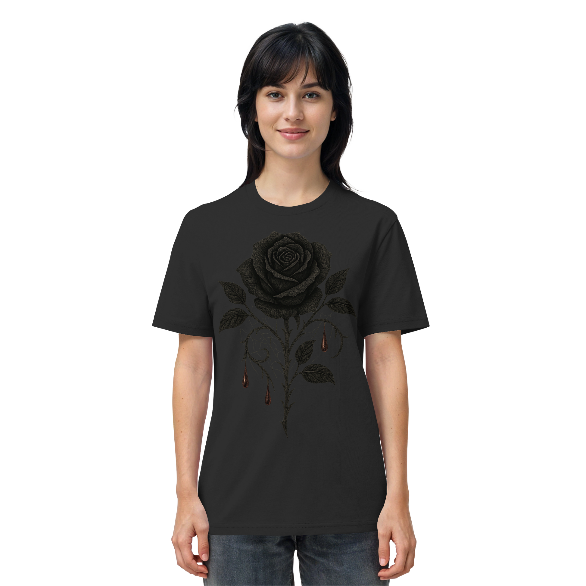 Whether you're into gothic fashion, dark romantic aesthetics, or simply appreciate the power of visual symbolism, this dark rose shirt delivers on every level. The fine detail and classic illustration style make it a timeless piece that fits seamlessly into any emo outfit, alternative wardrobe, or moody Halloween look. The bleeding effect adds an intense visual edge without being over the top – perfect for those who prefer their darkness subtle but sharp.