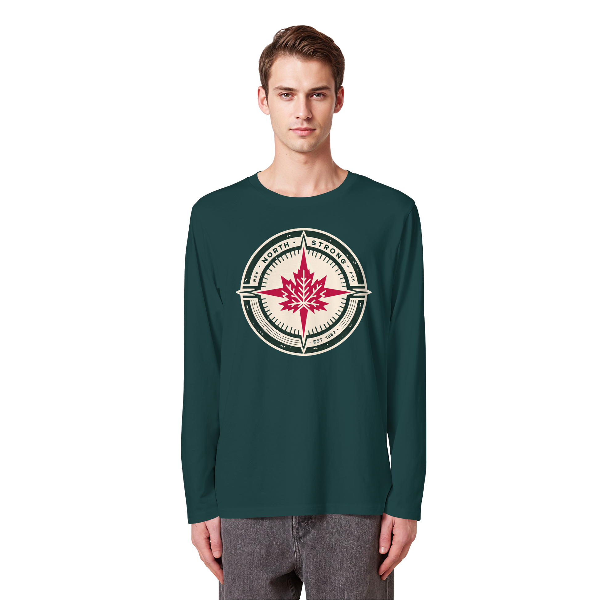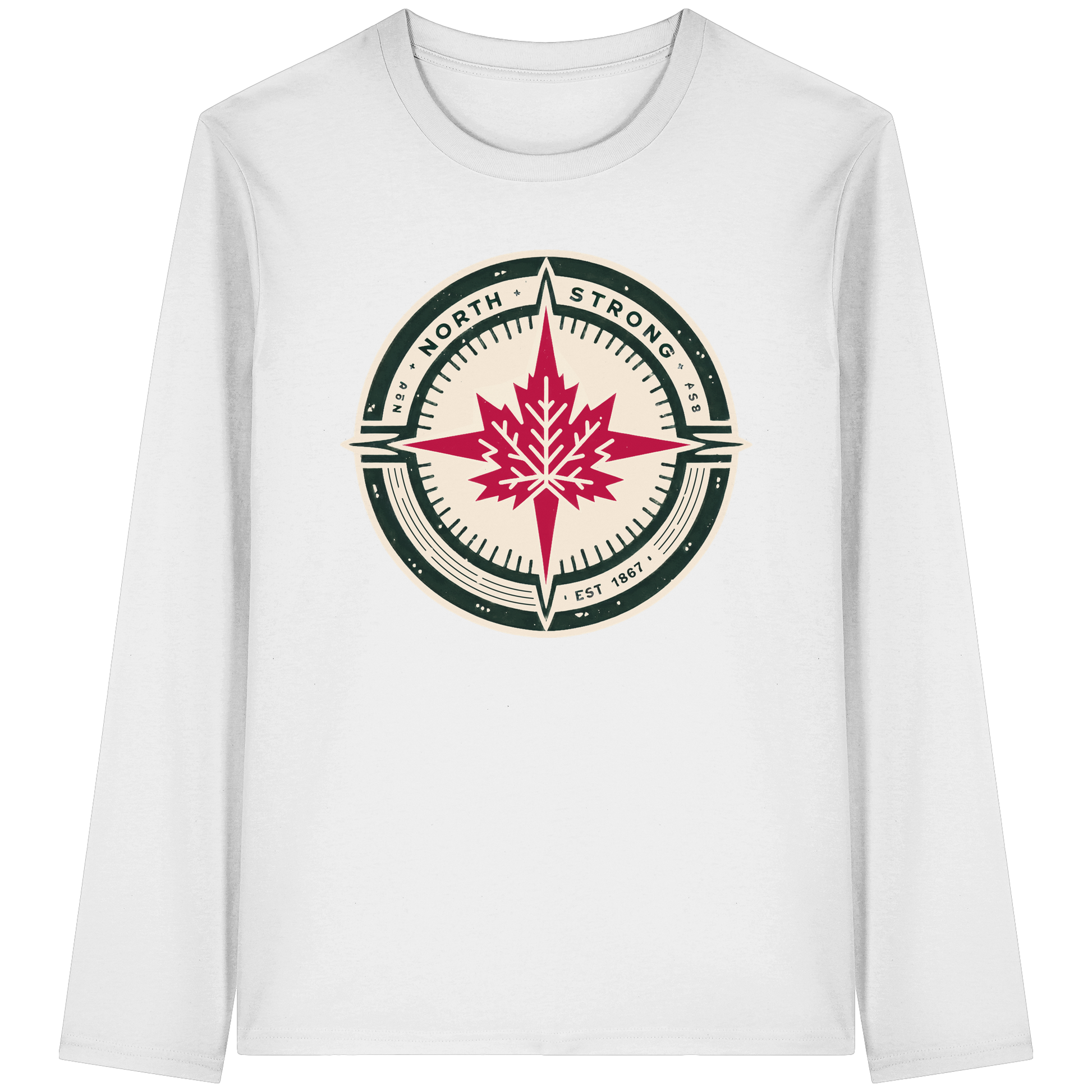 “North Strong” Compass Design – Unisex Long Sleeve Tee – Navigate Adventure with Canadian Pride
