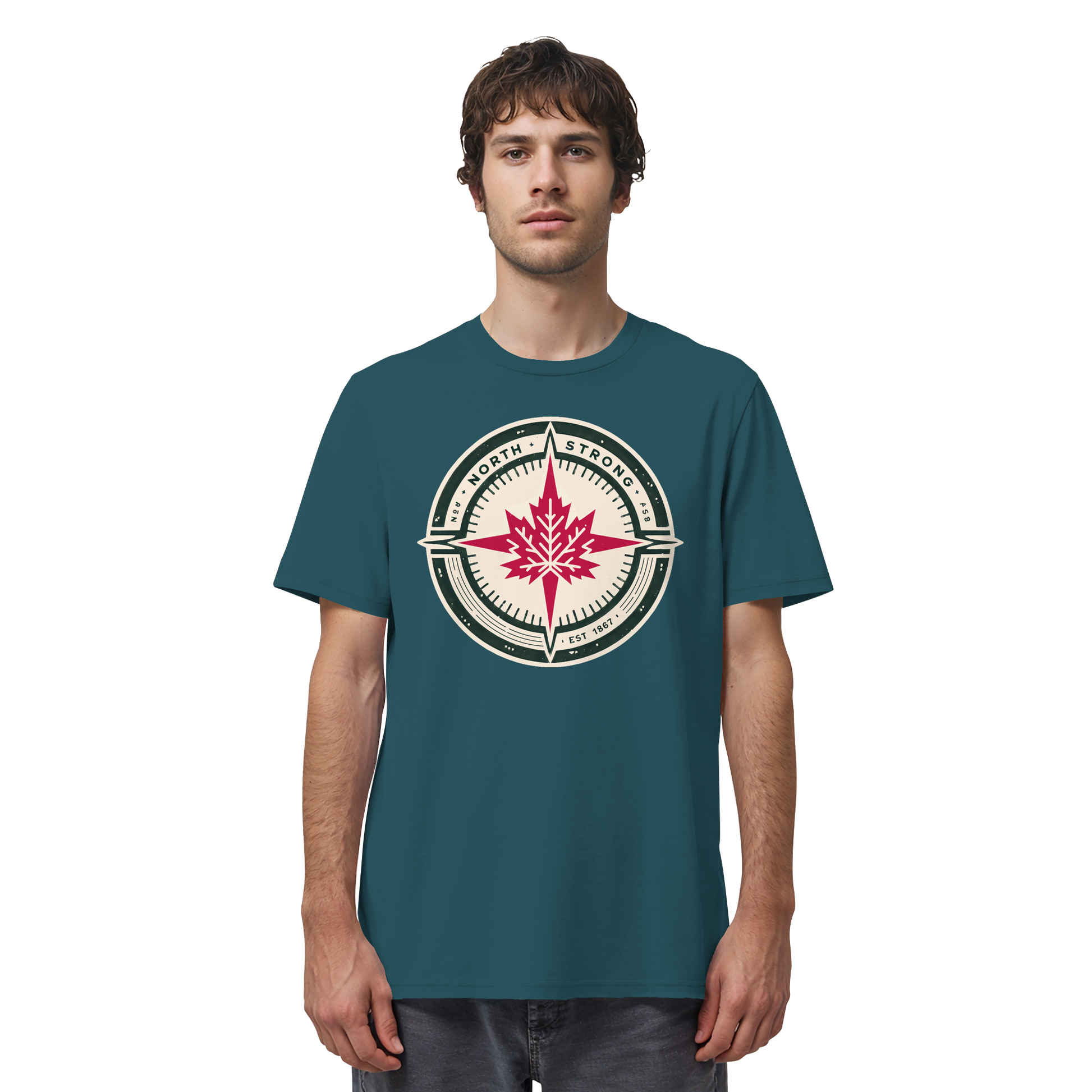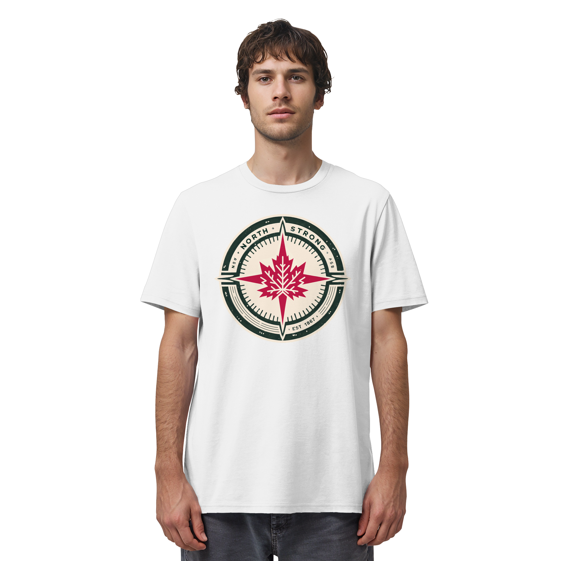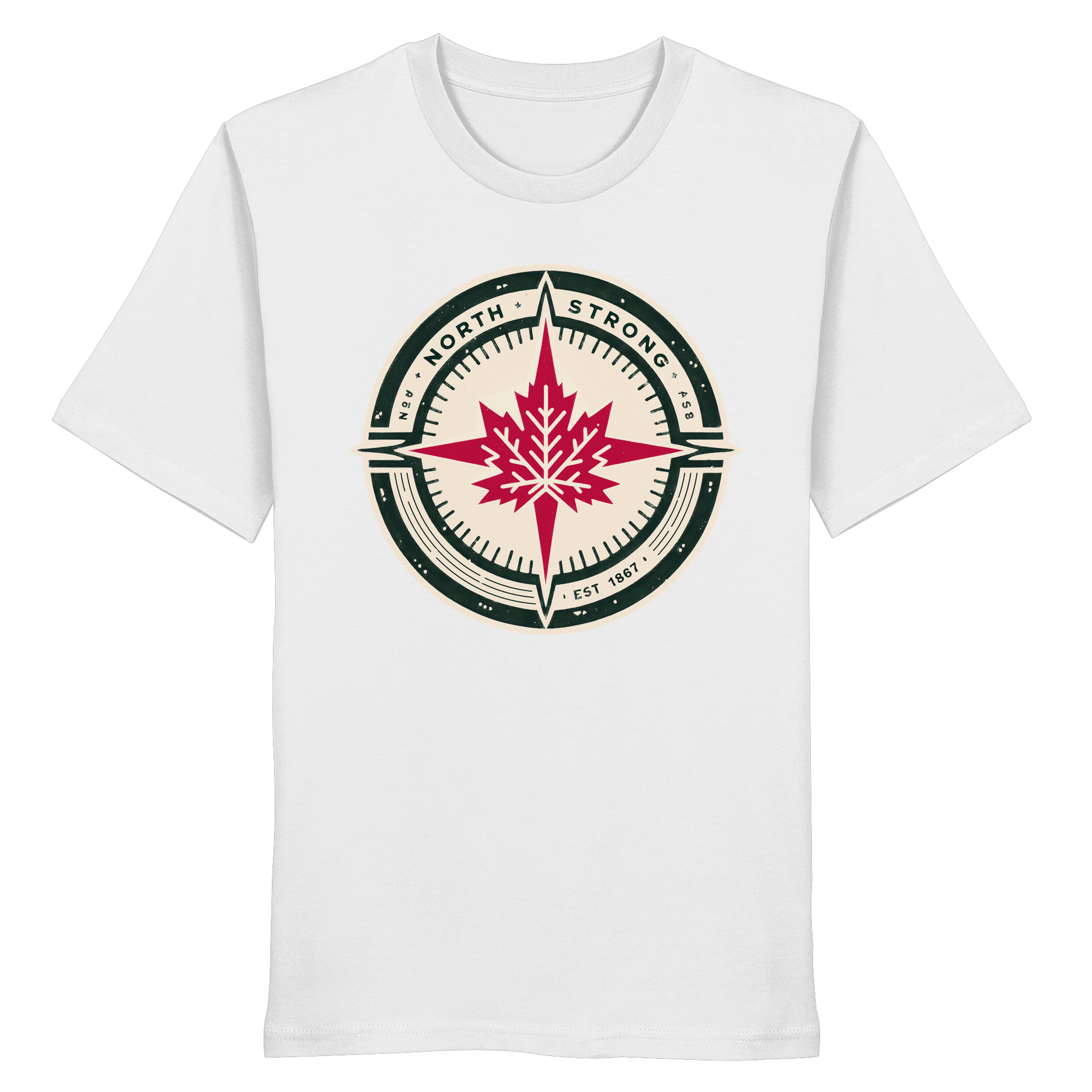 “North Strong” Compass Design Unisex Short Sleeve Tee – Navigate Adventure with Canadian Pride
