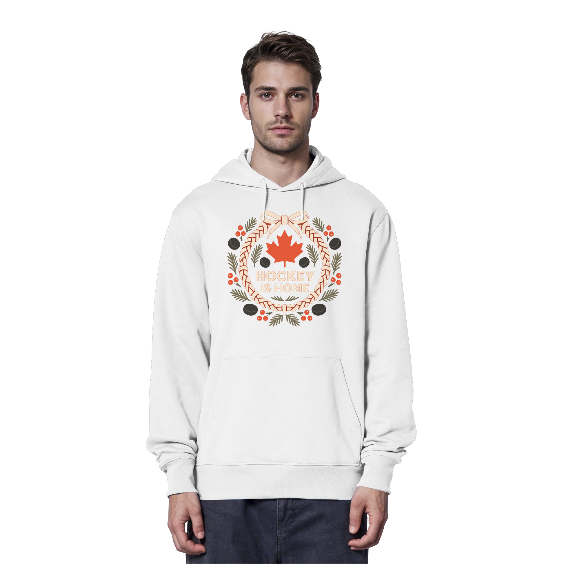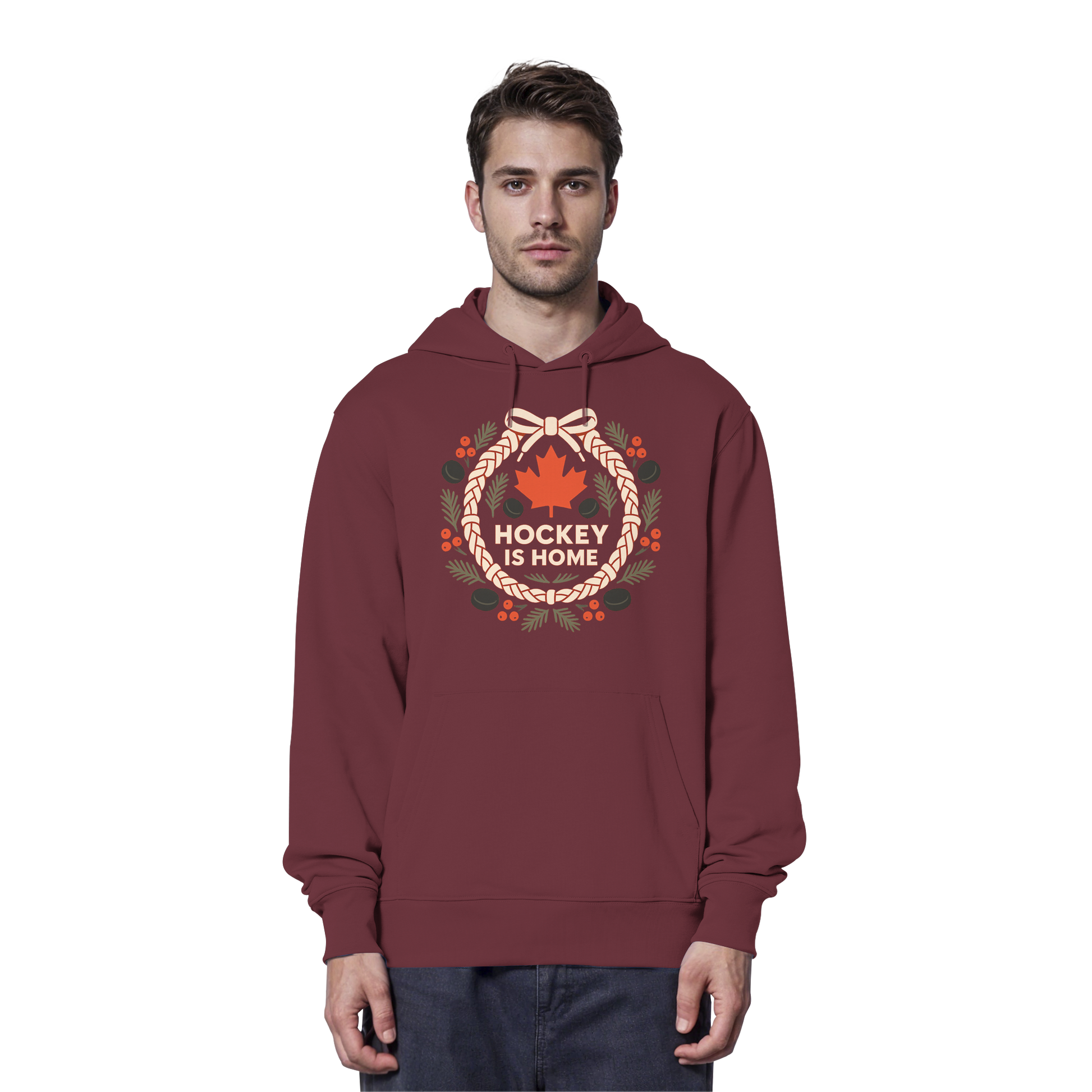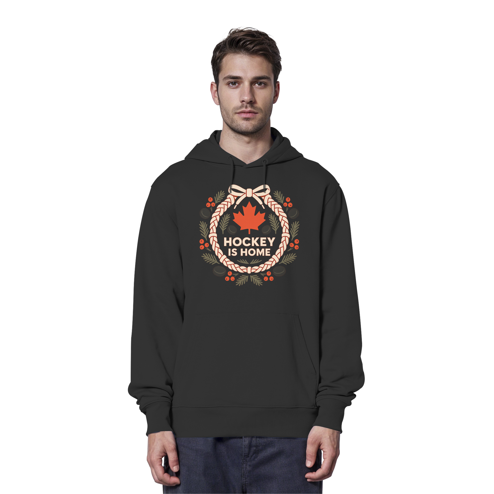 Hockey Lace Wreath: A True North Christmas Tradition Graphic and the Ultimate Fan Favourite. Nothing screams Canadian pride quite like this meticulously crafted graphic, fam! It flawlessly and artistically integrates the nation's overwhelming passion for Hockey with the festive holiday spirit. The central element is a sophisticated, deeply rustic Wreath—uniquely constructed from intertwined, realistically textured Eishockey Laces (hockey skate laces) instead of predictable traditional foliage. This inventive and highly detailed element immediately speaks to the heart of every true sport fan in the T-Dot and beyond. The wreath is beautifully accented with the iconic, rich red Maple Leaf, Canada's national symbol, alongside small, seasonal berries and evergreen sprigs, adding a touch of classic Christmas charm. The profound, patriotic slogan "HOCKEY IS HOME" is boldly positioned, underscoring the deep connection between the game, the rink, and the sense of warmth and belonging that defines the holidays in the Great White North. This graphic is a high-quality, must-have piece for the dedicated player, the proud hockey parent, or any enthusiast who considers the rink a second home. This design is truly a one of a kind statement piece that goes hard for the Canadian fan, combining sport heritage with holiday elegance. Show your Canadian spirit and your devotion to the game with this powerful, festive symbol, eh! This Canadian Hockey Christmas design with its Hockey Lace Wreath graphic is perfect for every Eishockey fan holiday design and features a classic Maple Leaf sport illustration. It’s the ultimate statement graphic for those who live and breathe the sport.