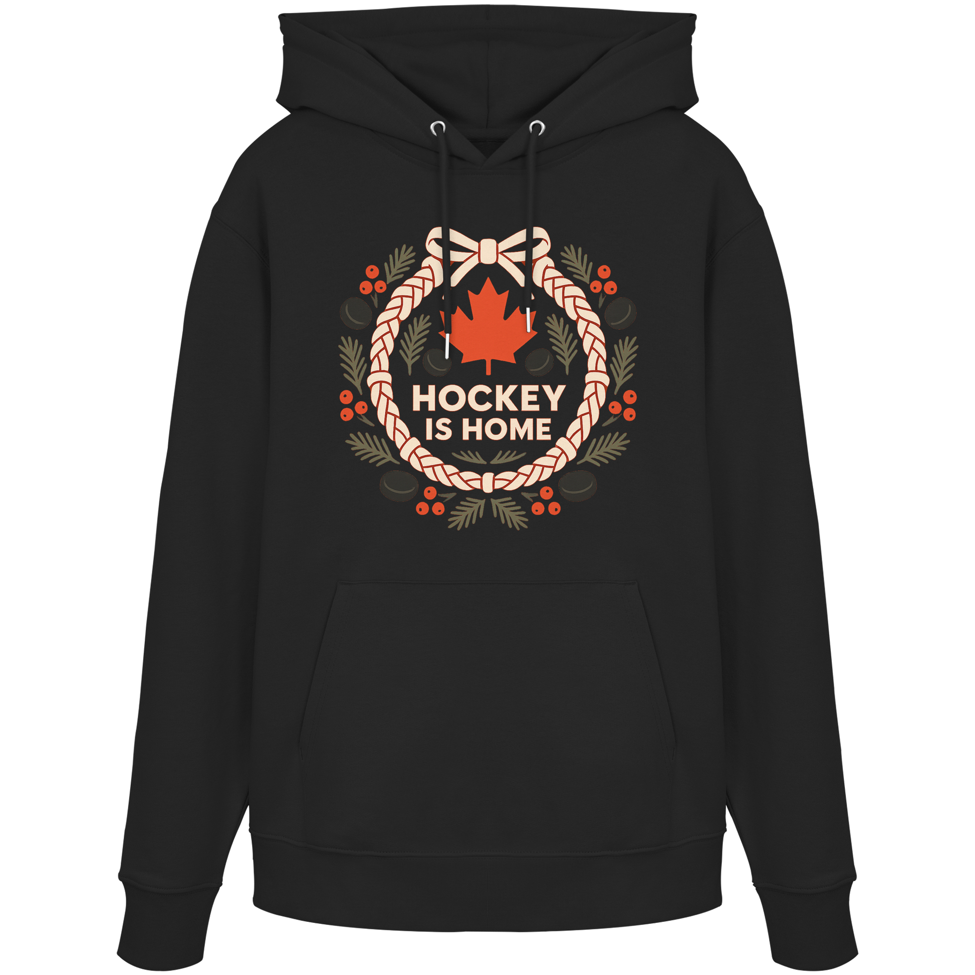 Hockey Lace Wreath Hoodie | Hockey Christmas Hoodie | Premium Fleece